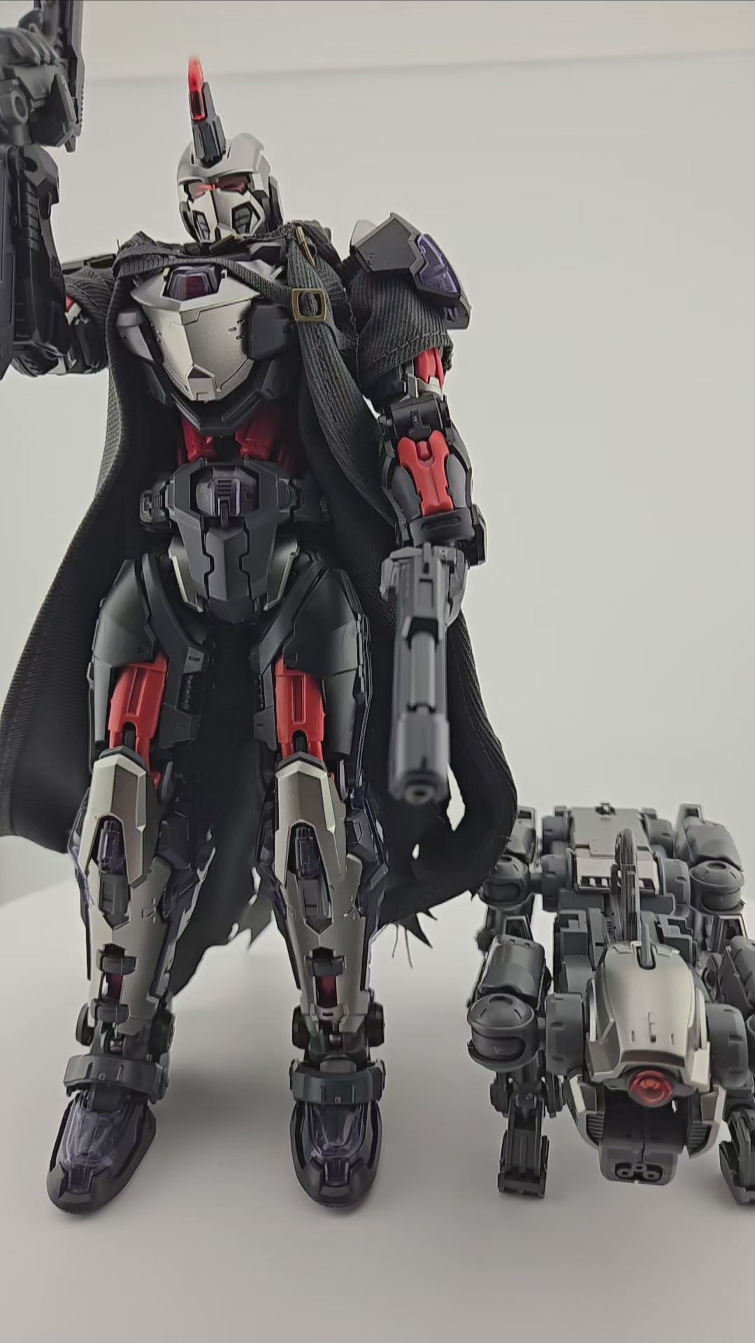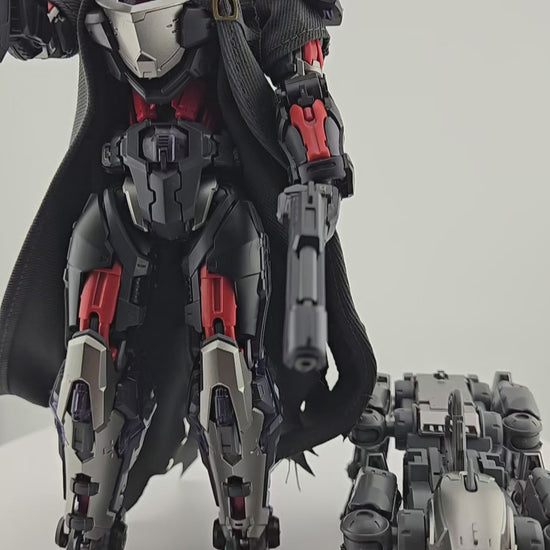This 1/10-scale model kit of the military cyborg Tastier that appears in the original work "Over Zero"! This limited-edition set includes Tastier, a general-purpose mechanical dog as a support mechanism, and a complex maintenance stand for display. The Tastier's parts are finely color-coded, and the silver parts are pre-painted, so you can get a great result just by assembling it, without the need for paint. The kit snaps together, too, so glue isn't necessary. Each of its joints has a wide range of motion for a variety of action poses; some of the parts are made of a soft material so they'll move flexibly. Handgun-type and rifle-type weapons are included, as well as a knife-type solid sword and a blade made of clear parts. The general-purpose mechanical dog can be separated into various parts and combined as additional weapons for Tastier, and it can also be equipped with Tastier's weapons and deploy a large gun barrel in its own form. It too features pre-painted silver parts.