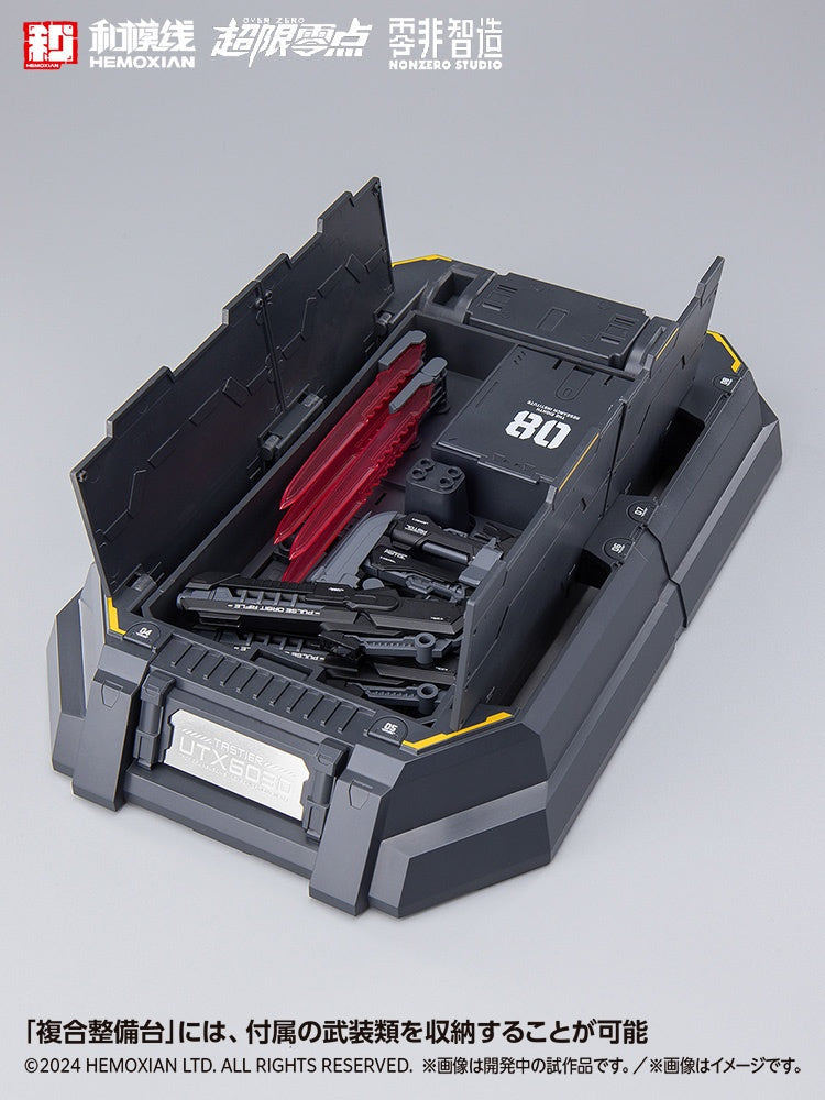 The composite maintenance stand for display can be expanded to store a variety of weapons; the replacement stand arm is made of flexible wire for dynamic action poses! This first limited edition includes effect parts and a long coat for Tastier, too! (These items are only included with the first limited edition; if yours does not include these items, it was not part of the first limited edition.) The effect parts can be attached to each of the weapons, increasing the power of their slashing and shooting actions! The long coat features a wire embedded in the hem, so you can accentuate Tastier's action poses even more! Order this spectacular set for your own collection today!