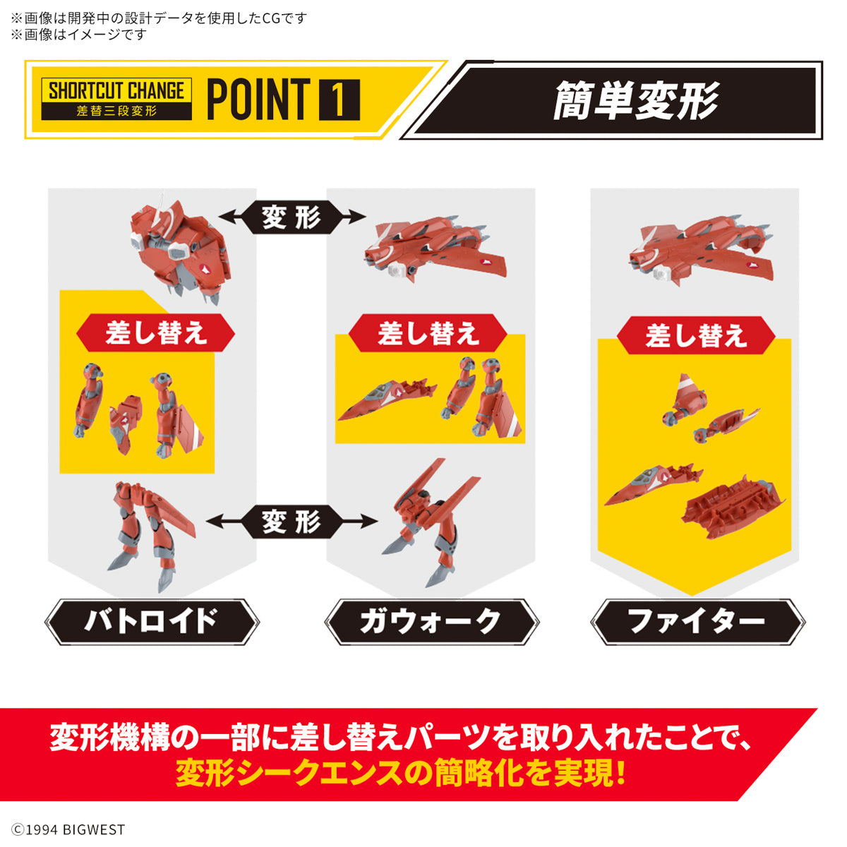 The VF-22S Sturmvogel II, as piloted by Milia Fallyna Jenius in "Macross," joins Bandai's "High Grade (HG)" model-kit series! By incorporating interchangeable parts as part of the transformation mechanism, the transformation sequence has been simplified; it can easily transform into its Battroid, Gerwalk, and Fighter forms. A three-stage interchangeable transformation (shortcut change) allows an accurate form of each stage of the transformation. A new dimension of mobility has been achieved by eliminating complex structures and providing optimal movable points! The head features a movable axis and a ball joint at the base of its neck for extra expressiveness. The shoulders have a wide range of motion thanks to the movable duct section and shoulder joints; the chest has multiple built-in movable axes, allowing for a wide range of movement in all directions! The canopy is made of polarized molded material, and it can be opened and closed. Effect points to recreate the Pinpoint Barrier Punch are included, and the kit also includes namer seals, which are extremely thin but have excellent concealment properties. Order this fantastic kit for your own collection today!