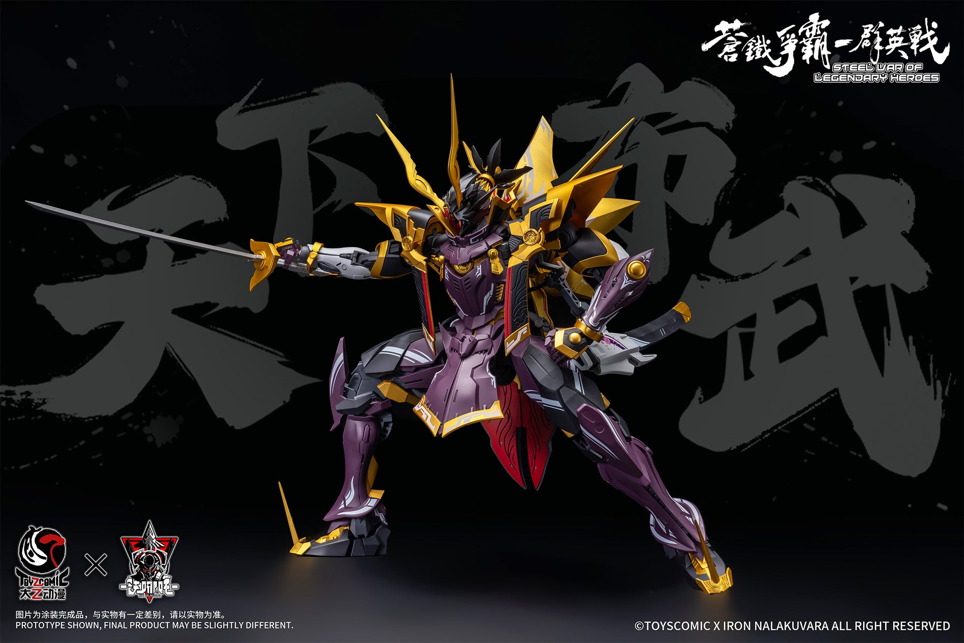 ToysComic collaborates with Iron Nalakuvara to bring us the 1/100-scale model kit of Oda Nobunaga from "Blue Iron War - Battle of the Sixth Heavenly Demon King"! Created by mechanical designer Junichi Akutsu, this kit features a sinister yet majestic design befitting its nickname. The black and purple colors with sharp golden decorations creates a demonic presence; it can be transformed into three different forms! The wide range of parts allows for a variety of display possibilities -- don't miss out on this masterpiece, and place your order today!