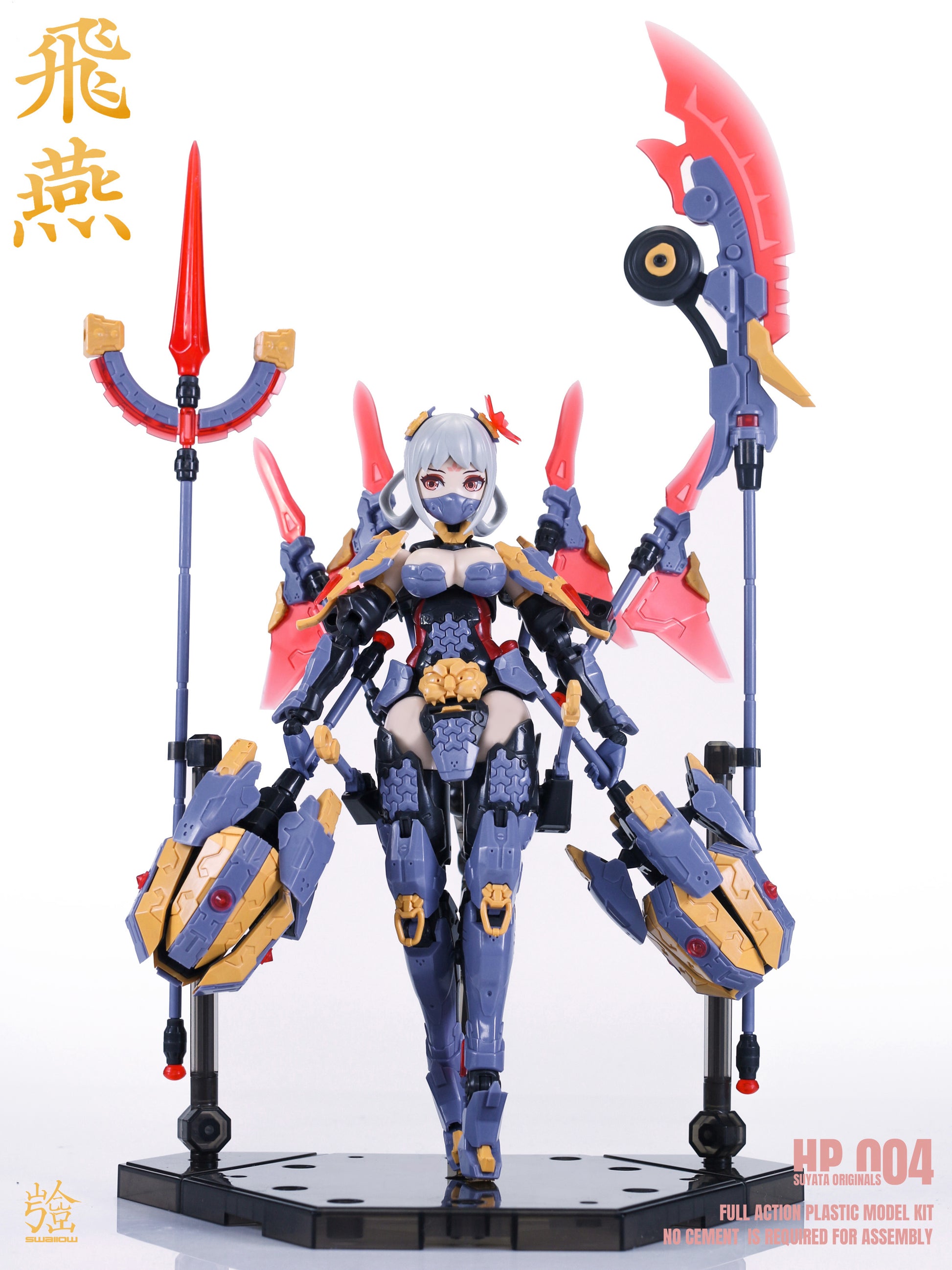 Hien returns to Suyata's "The Hunter's Poem" action-figure kit lineup! This dashing warrior reminds us of the role of "Tomadan" from traditional Chinese opera. She's armed with a variety of weapons such as a huge ring, a spear, and a Blue Dragon Sword; several interchangeable faces are also included. Her weapon equipment can be transformed into a swallow-type combat support droid, too! Order her for your own collection today!