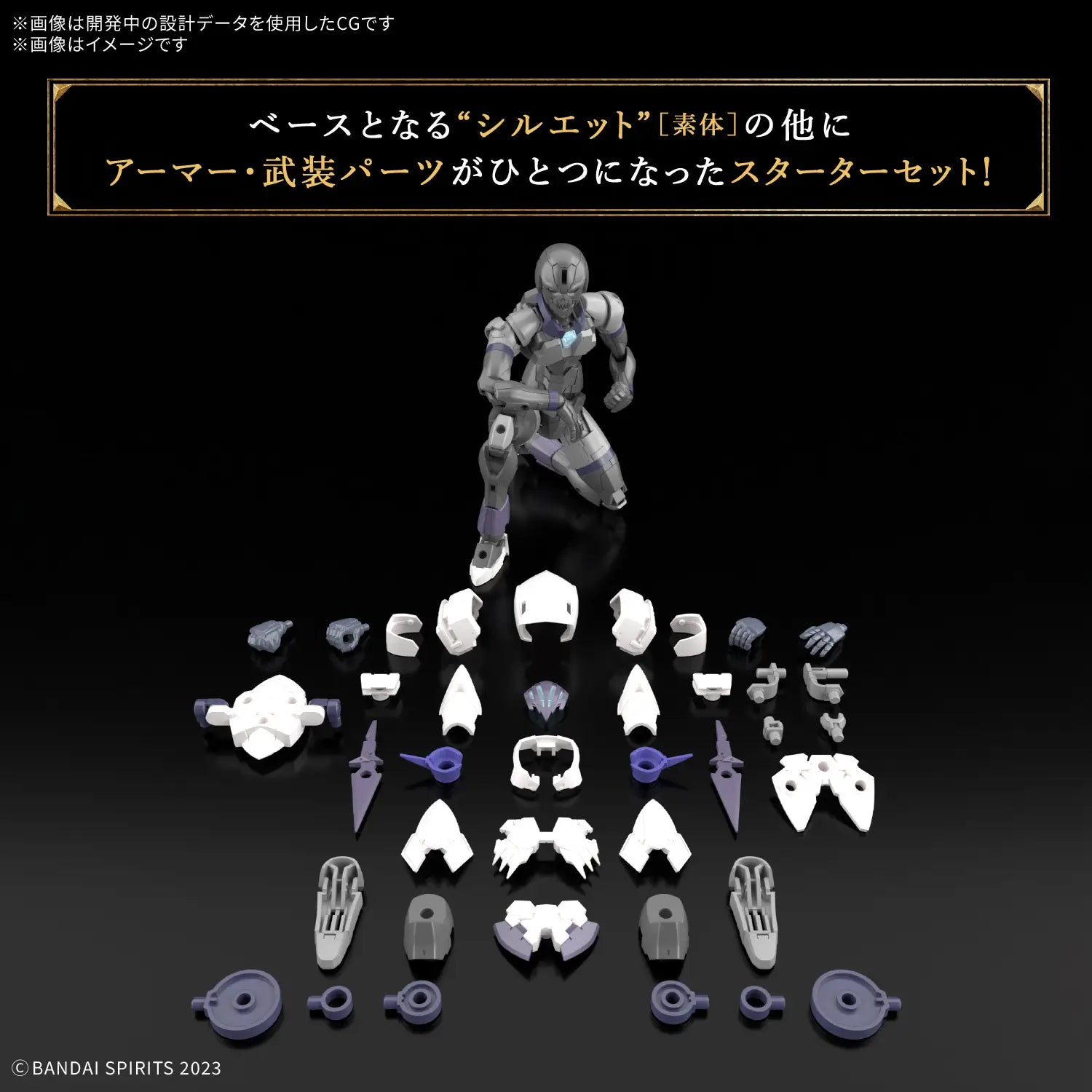 Bandai's "30MF (30 Minutes Fantasy)" figure-kit series allows you to create your own fantasy-based figures and characters! The starter set includes armor and armed parts in addition to the base "silhouette" (elementary body). The shoulder joints are designed with great care to keep the body line intact even in bold poses; the movable axes on the chest, torso, and waist work together with the sliding mechanism at the base of the waist joint to achieve natural poses. Armor and weapon parts are included to combine with the "silhouette" to "change jobs" to that of the Rozen Assassin! Two daggers are included as weapons; flexible movement is achieved by attaching the shoulder and waist armor via the joint on the back. The attribute of the Element Core is "water." Order him for your own collection today!