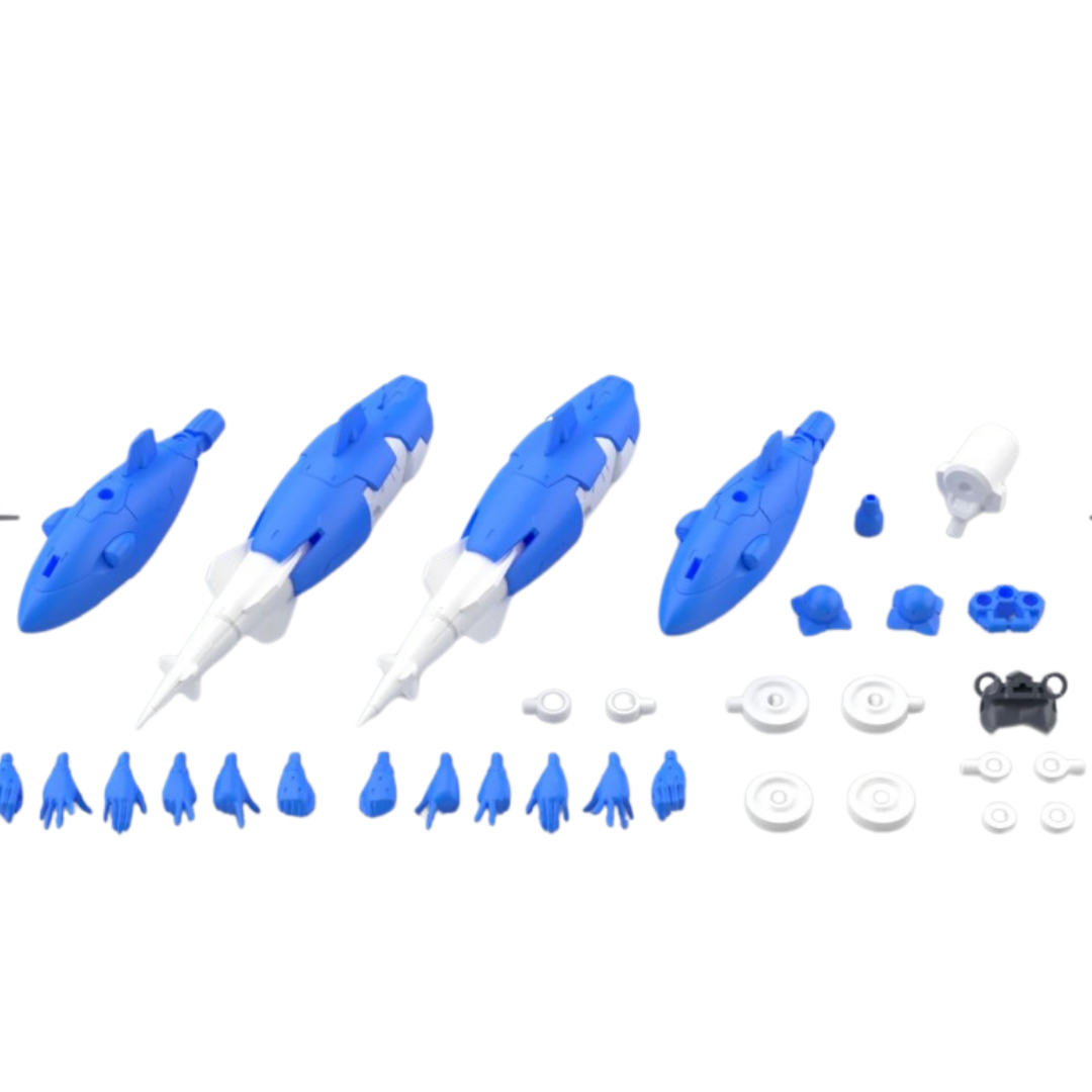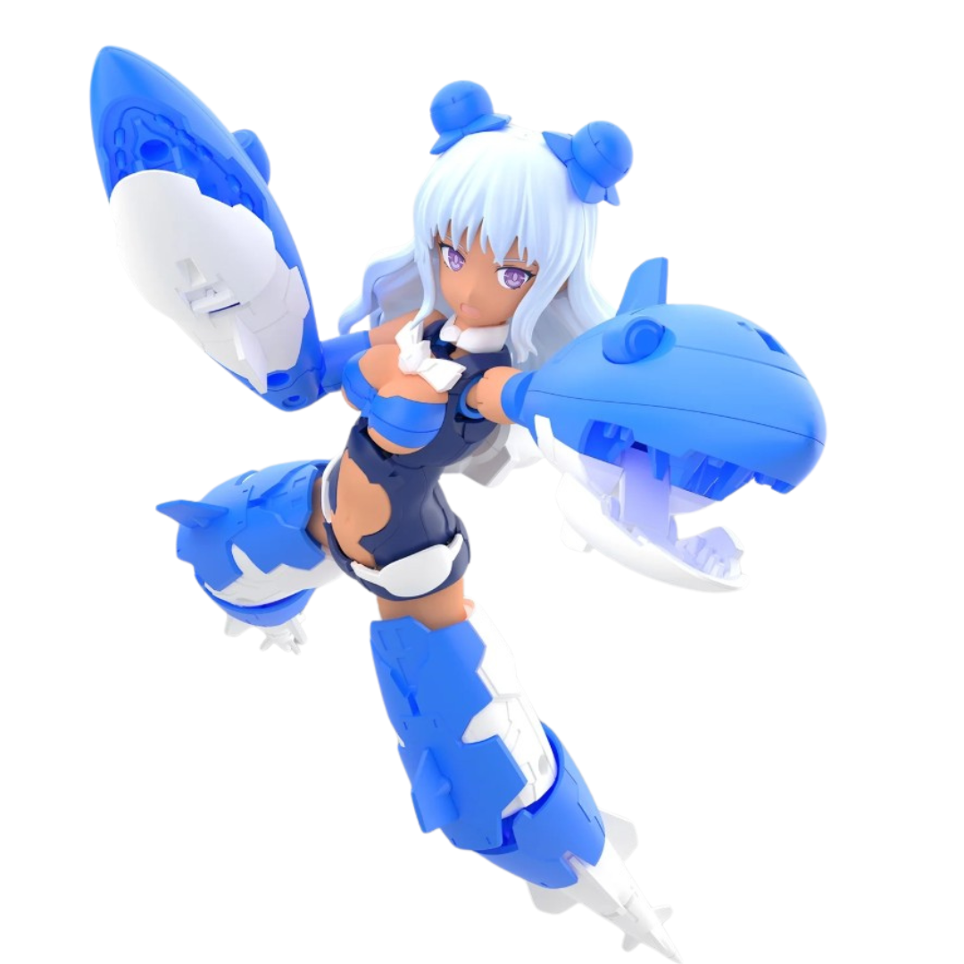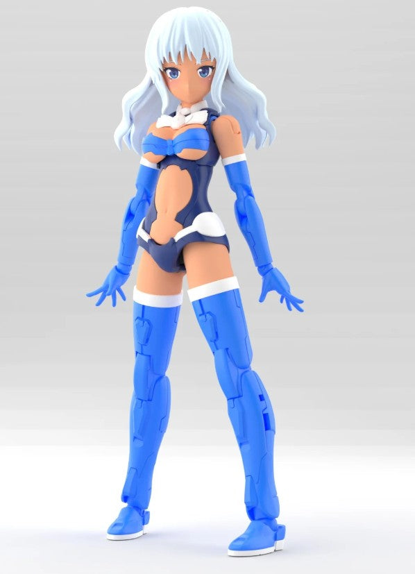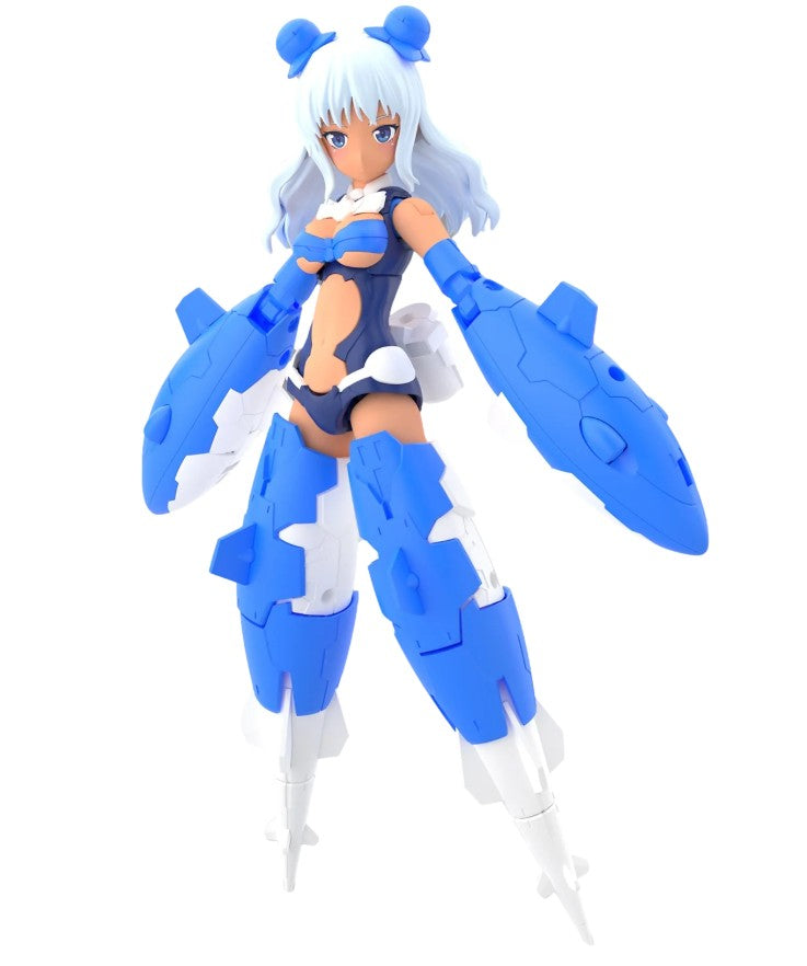 This all-in-one kit includes a character body, 3 types of facial expression parts, and armor parts. Face parts use tampo printing. You can enjoy changing the expression according to the scene. A new hairstyle type part is included. Comes with armor inspired by underwater equipment. Armor can be opened and closed.