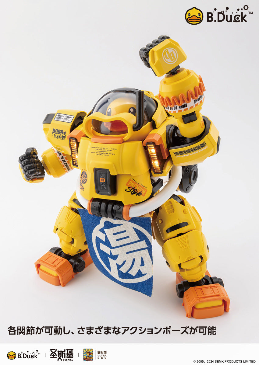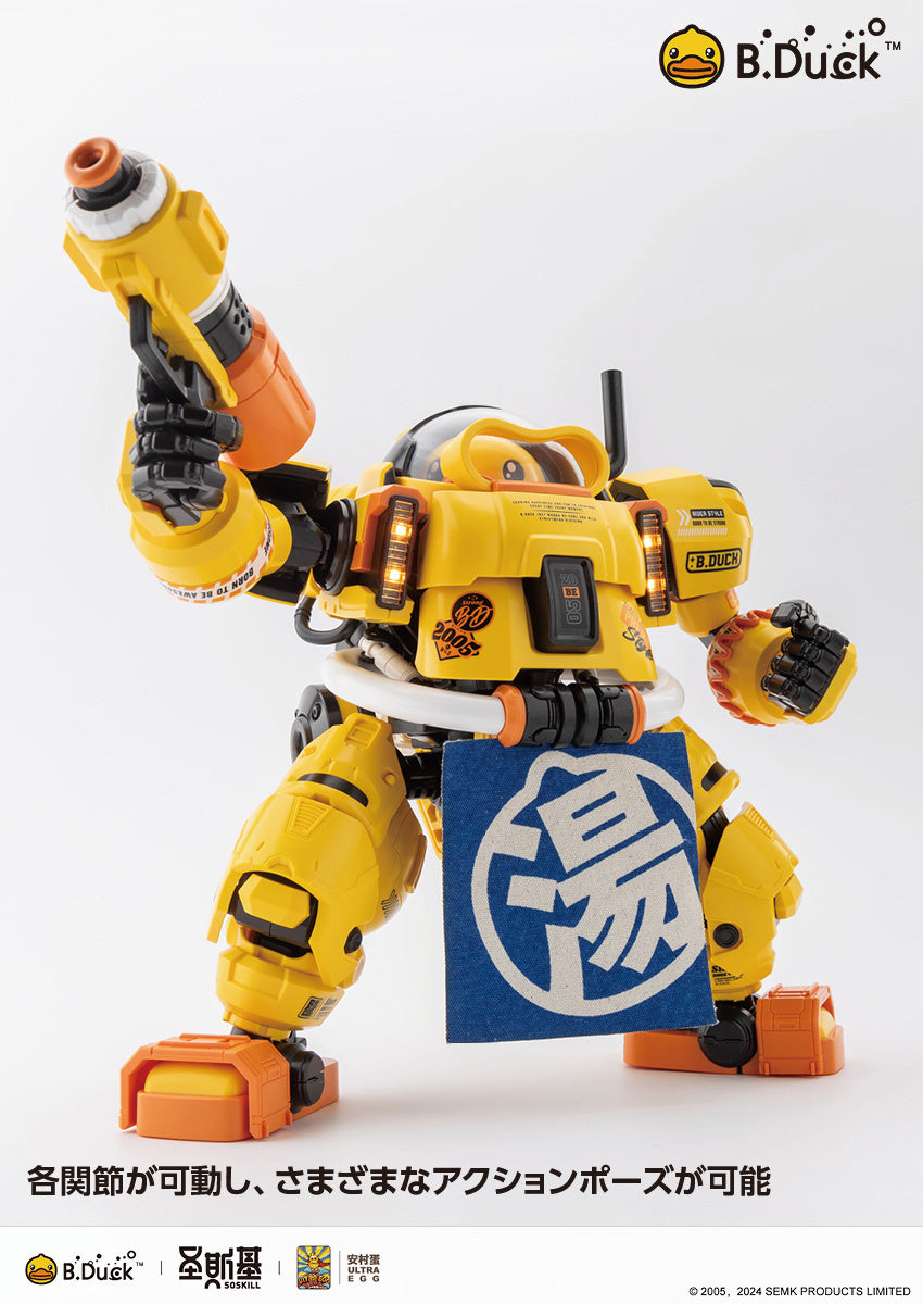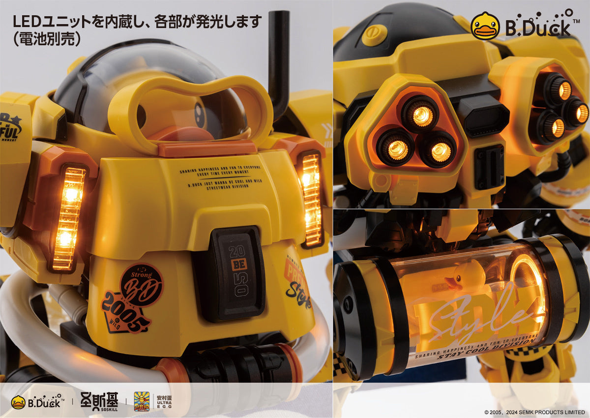 Wave brings us a model kit of a powered suit with an adorable duck as the pilot! This full-fledged mecha model has a pleasingly round shape for extra cuteness, plus lots of detailed parts for a dense mechanical appearance. It's satisfying to build, and it has various gimmicks such as movable parts and a pilot figure. The kit snaps together, and an LED unit is also built in to light up some of the parts! Order yours today!
