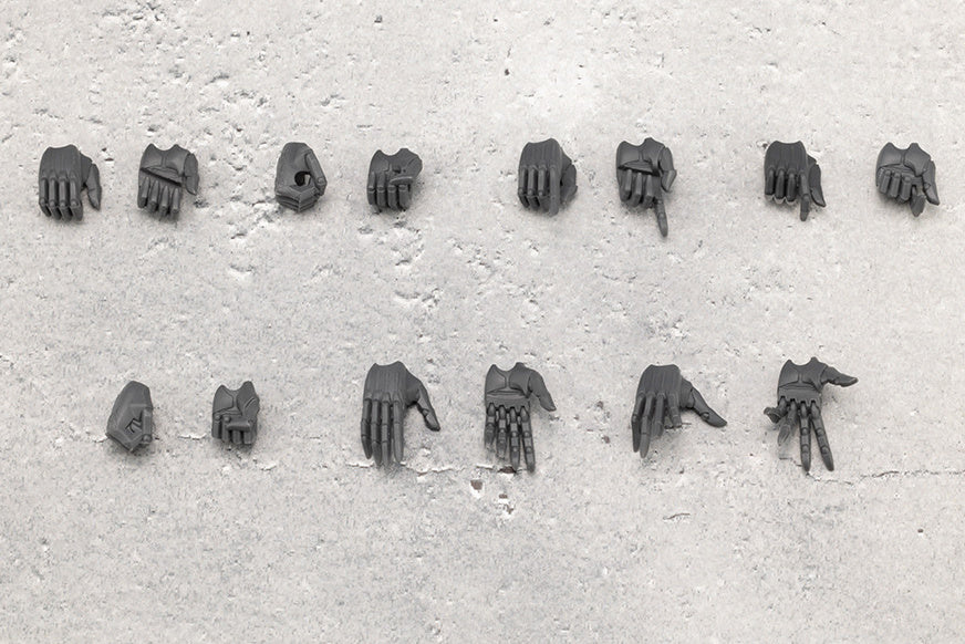The hard point on the wrist rotates forward by bending almost 180 degrees inward; this figure has larger joints than female characters and can firmly hold various weapon units. There are seven pairs of interchangeable hands, too. This kit is molded in color, so you can get an amazing result just by assembling it! Order yours today!