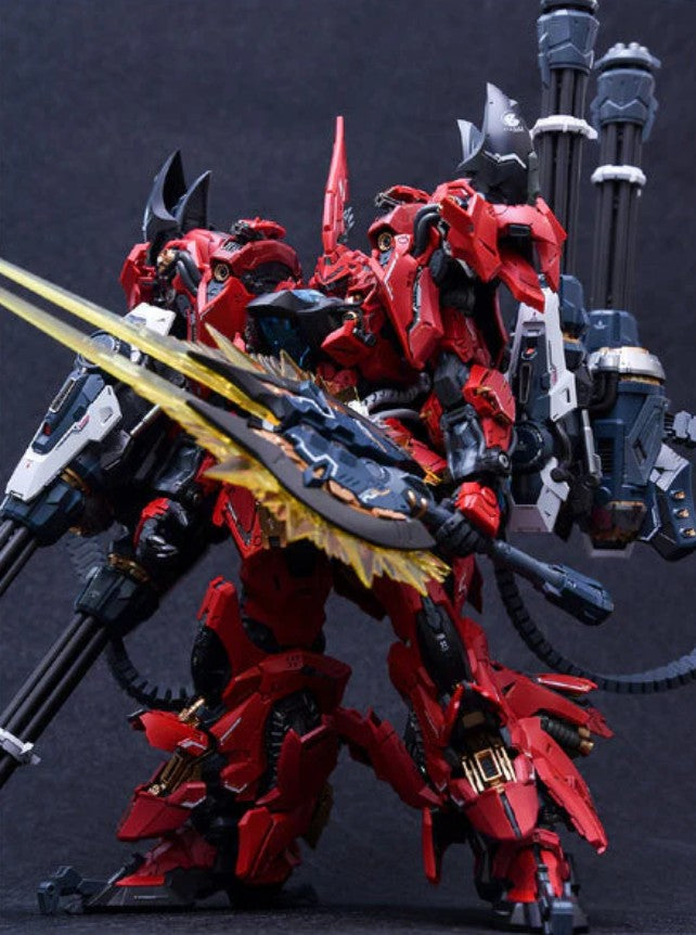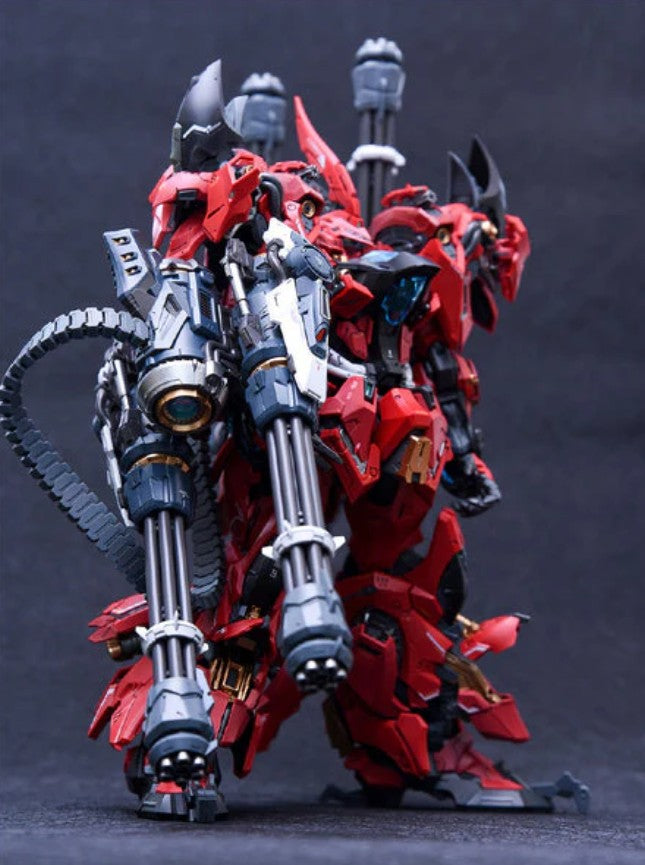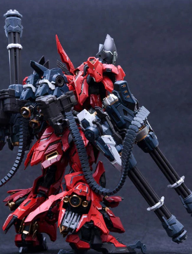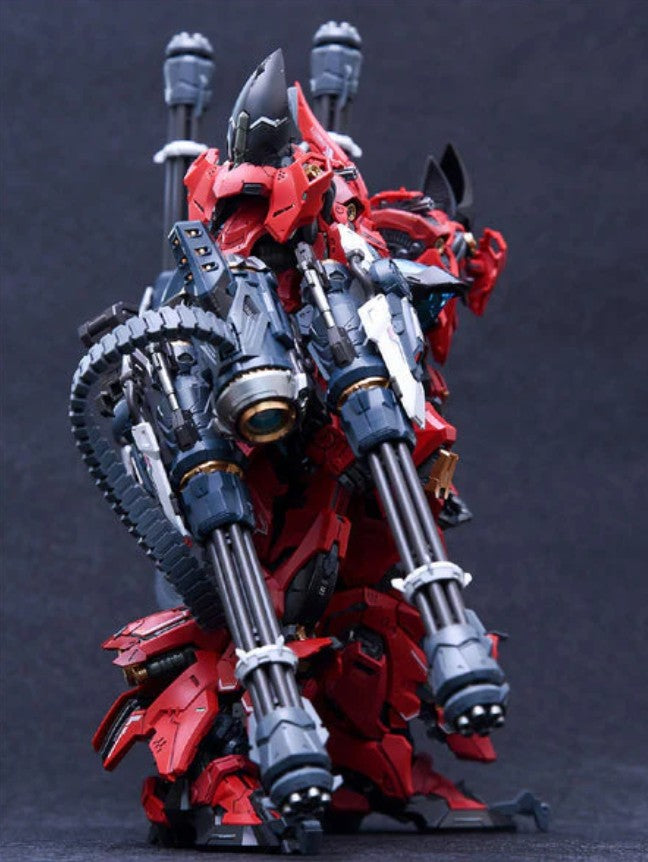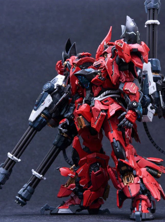 This model is equipped with four heavy Gatling guns, a beam axe, thermal axe, beam dagger, and a beam long sword for dynamic posing options and formidable combat display. The model’s precision-engineered skeleton enhances its mechanical appeal. With exposing armor that showcases the skeletal structure even when assembled, this kit is as functional as it is visually striking.