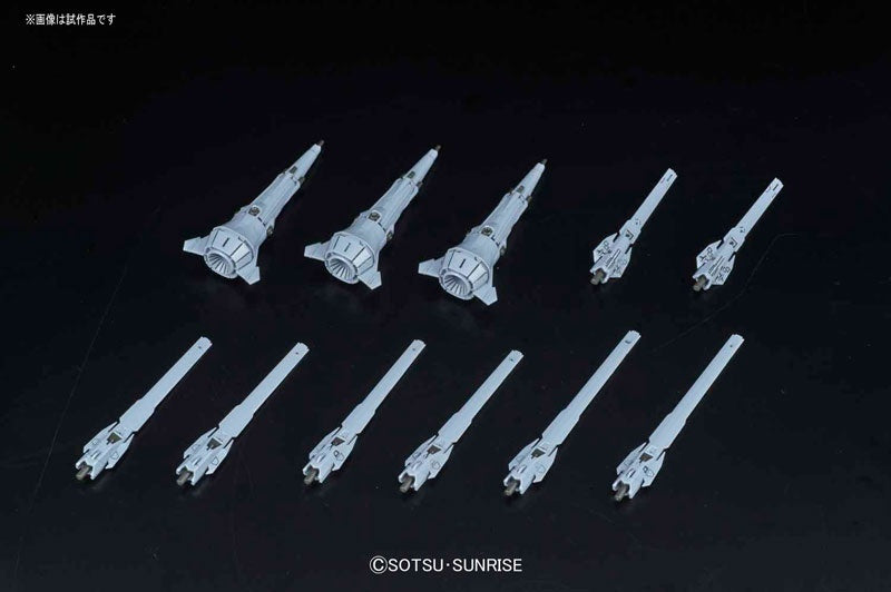 The Providence Gundam shares its genealogy with the Freedom Gundam and utilizes some of the same frame parts incorporating a highly dynamic joint structure and balanced proportion. Its distinctive rear-mounted DRAGOON pods can be equipped and displayed with clear struts to recreate its all-range attacks.