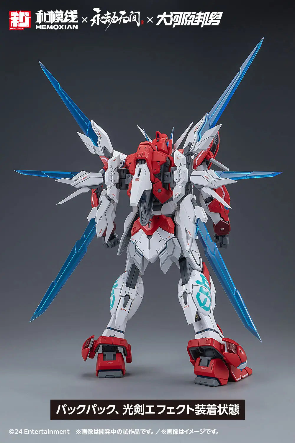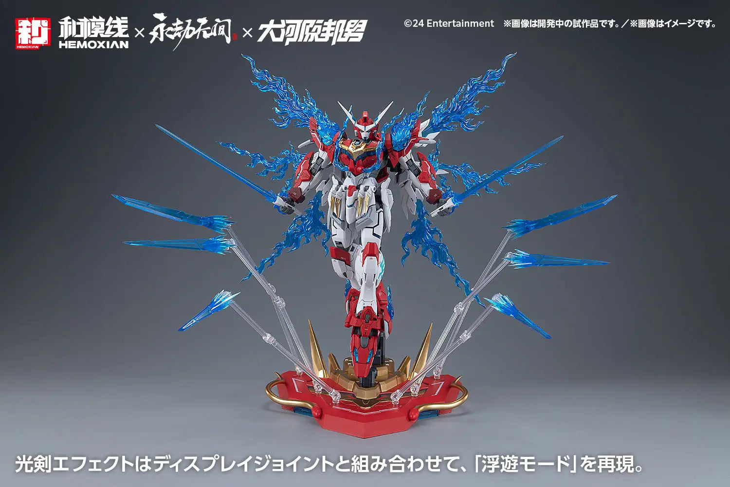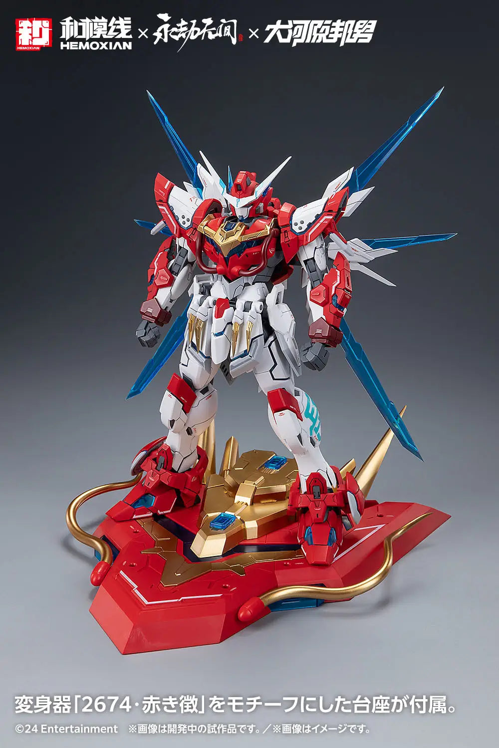 Yueshan's mecha skin [Dragon Call] from the swordplay action game "Naraka: Bladepoint" is now a 1/15-scale model kit from Wave! This majestic robot's image is faithfully reproduced with molded colors, some pre-painted parts, and stickers. Each joint has a wide range of motion for action-packed posing, and a variety of effect parts and weapons are included too. The base, which is based on the transformation device "2674: Red Sign," can display effect parts in addition to the mech. Waterslide decals are also included! Order yours today!